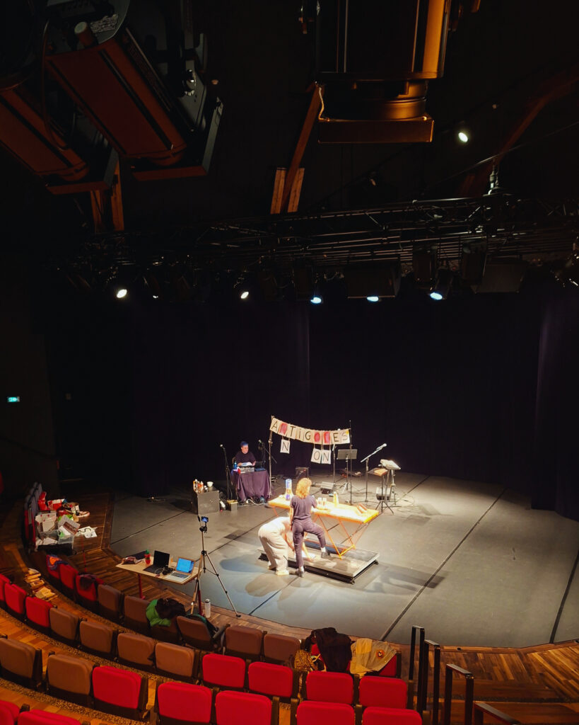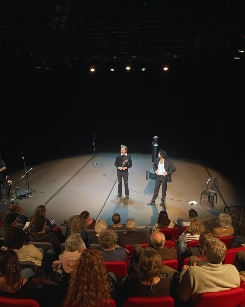 Ces dernières semaines, le Centre des Arts du Récit a accueilli trois compagnies en résidence au Théâtre Prémol. Temps de recherche, d’essai et de création, les résidences permettent aux artistes de développer leur projet. Le fruit de leur travail est ensuite présenté lors de sorties de résidence, des moments conviviaux qui permettent d’échanger avec le public sur les ressentis et les questions qui en découlent. Les spectateurs et spectatrices ont donc pu découvrir :